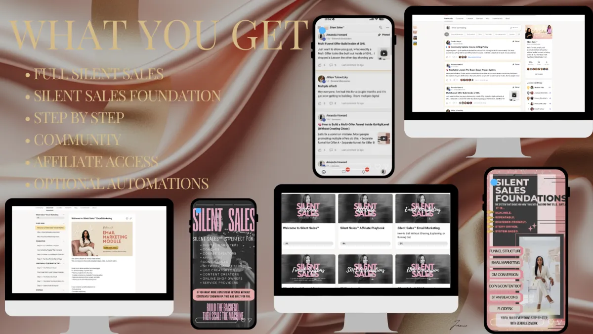 Silent Sales™ teaches you how to build funnels, emails, and automations that support consistent sales without relying on constant posting, DMs, or going live.